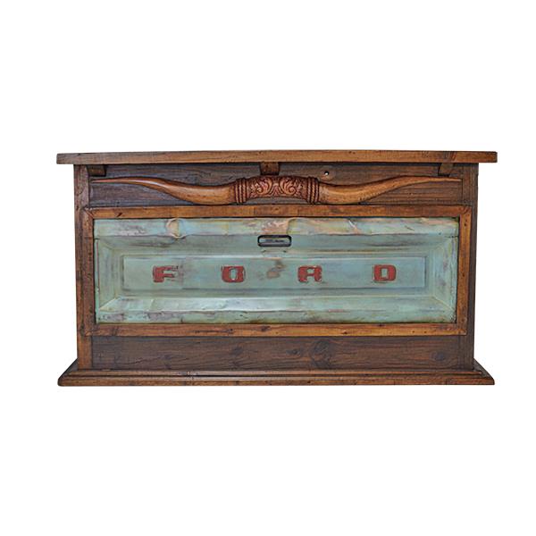 This tailgate bar/server proudly showcases a Ford tailgate, with ample storage for all of your bar essentials. This Antique Tailgate Bar is perfect for showcasing your team spirit and entertaining guests. It's the ultimate addition to any home.