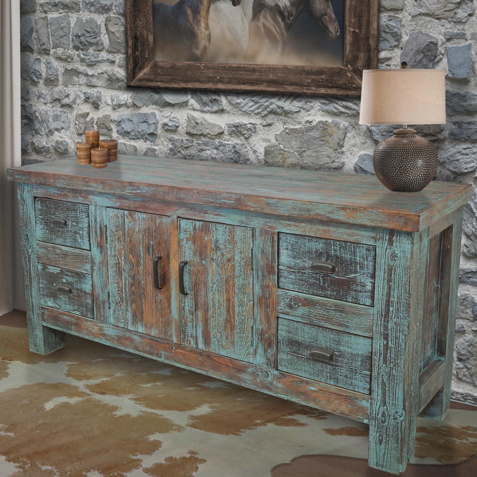 Expertly crafted, the Creed Turquoise Console Table showcases rustic design and expert construction, this console table will add warmth and color to any room in your home.