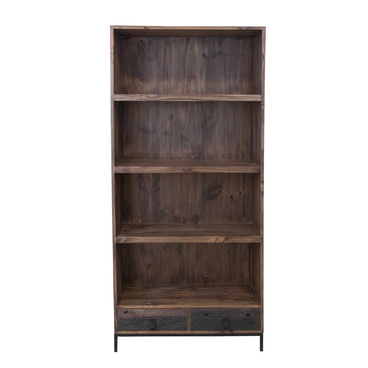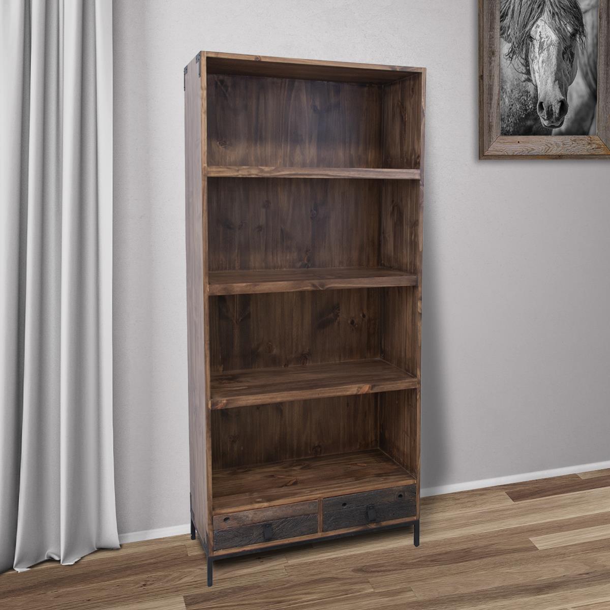 The Riverside Dark Walnut Bookcase showcases a rich dark walnut finish bringing warmth and timeless charm. Its metal accents gracefully compliment the rustic aesthetic. With the addition of conveniently placed drawers, this bookcase offers not only ample storage space but also a touch of uniqueness.