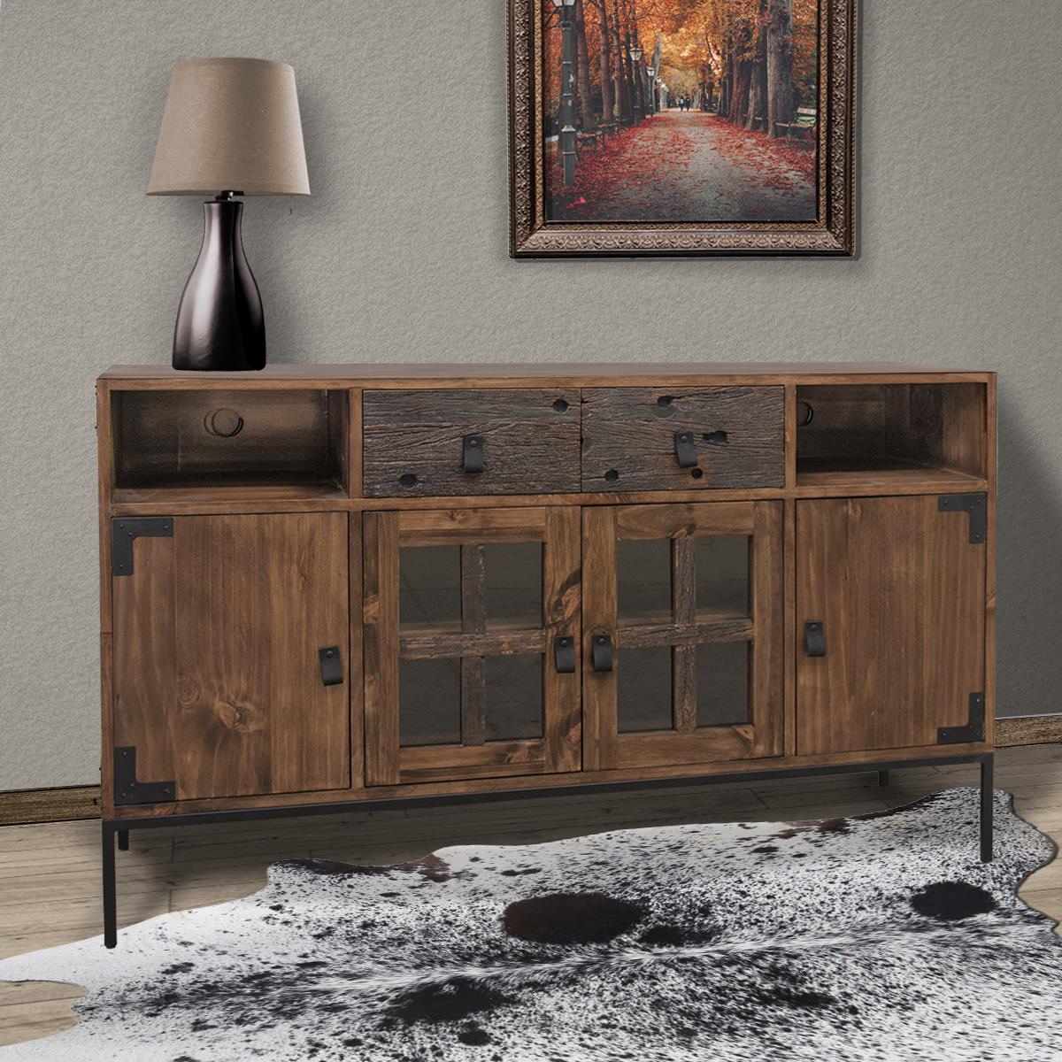Crafted with a rich dark walnut finish this Riverside TV Stand adds a touch of rustic elegance to any space. Available in multiple sizes, it is designed to fit seamlessly into any room large or small. The open shelving provides easy access to media devices and decor while the closed compartments offer hidden storage for a clutter free look.