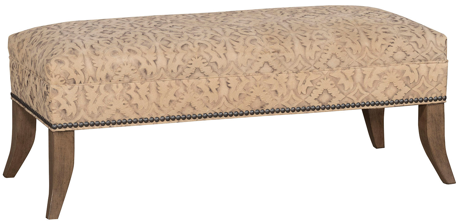 Subtle sophistication meets artisan craftsmanship in the Palomino Bench. Upholstered in a dove-hued embossed leather with a refined tonal pattern, this piece carries an understated elegance that blends seamlessly with both rustic ranch and refined Western interiors. Perfect for the foot of a bed, an entryway, or alongside a grand dining table, the Palomino Bench offers a versatile elegance designed to outlive trends.Â